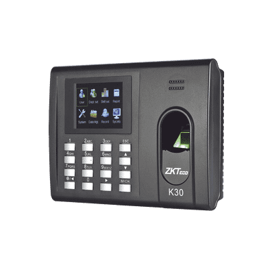 El K30 es una elegante terminal de Tiempo y Asistencia con funciones básicas de control de acceso.Permite la administración de cerraduras eléctricas y botones de salida.