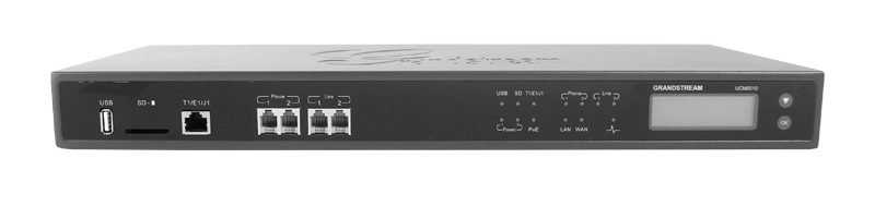 • Una interfaz T1/E1/J1 integrada, 2 puertos FXO para troncales PSTN, 2 puertos FXS para teléfonos analógicos con capacidad de respaldo en caso de interrupción de la energía eléctrica e ilimitadas troncales SIP